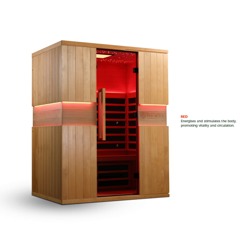 Sustainably sourced and hypoallergenic, the Canadian Hemlock timber used in every Revel Aura is hand-finished for a clean, modern look that fits beautifully in any space. Known for its natural resistance to warping and cracking, Hemlock is the ideal material for consistent heat retention and long-lasting performance. It’s a commitment to quality you can see and feel.