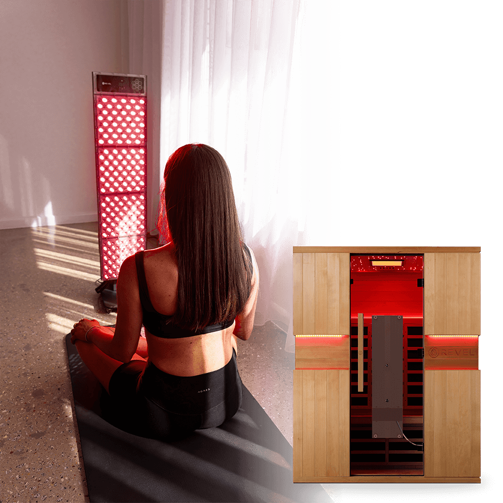 Ready to take your wellness up a notch? The Aura includes an internal power socket for seamless setup of the Revel Helio Red Light Therapy device (sold separately). Whether mounted to the inside of the door or used with a stand, this feature allows you to integrate proven red light benefits into your routine, boosting skin health, muscle recovery, and cellular energy.
