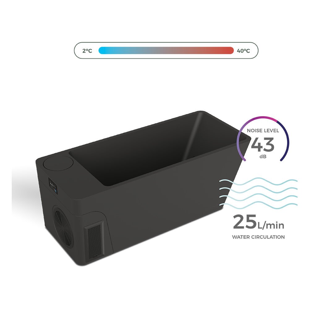 Forget the plumbing drama. The Glasur’s all-in-one design eliminates the need for hose connections or external chillers, just fill the tub and flick it on. It cools down to an invigorating 2°C or warms up to a toasty 40°C, giving you complete temperature control for cold plunges or hot soaks, all without complex setups. This makes it a perfect solution for busy households or wellness studios where convenience matters.