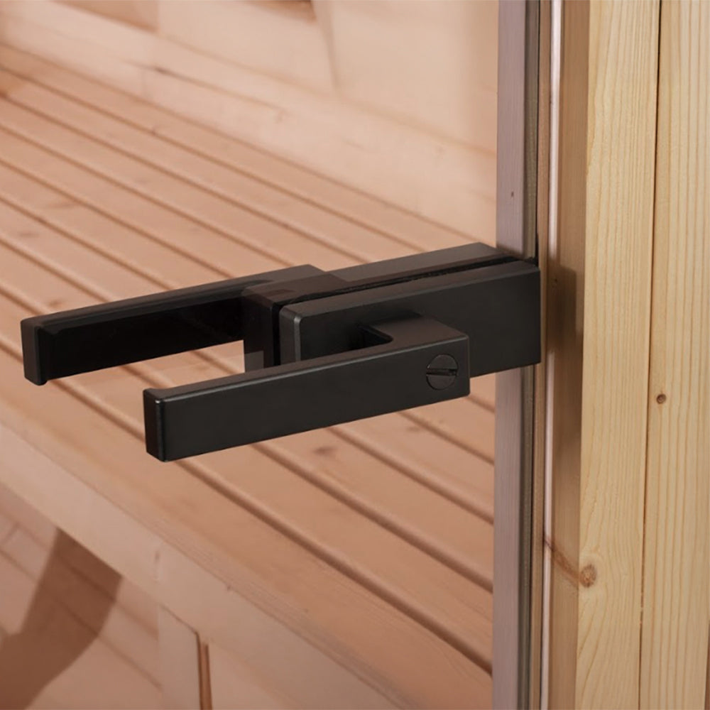 The Barrel is finished with sleek Black brushed aluminium door handles that balance modern design with everyday functionality. The door is lockable and unlockable from both the inside and outside, offering peace of mind whether you're mid-session or stepping away. Built to stay secure even in windy conditions, the door won’t blow open or rattle, ensuring your sauna remains a calm, contained space no matter the weather.