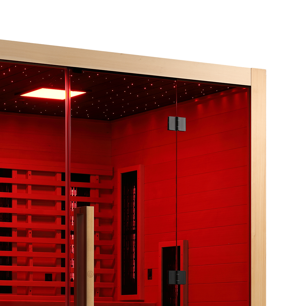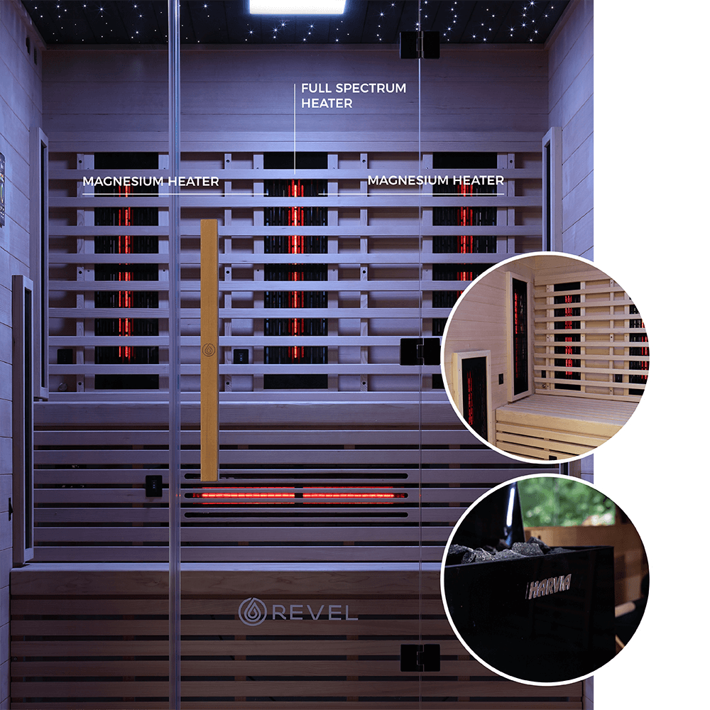 The NordicWave features eight advanced 2-in-1 infrared heaters, giving you the choice between two distinct settings depending on your wellness goals. Select the magnesium-oxide ceramic mode for intense mid and far infrared heat, perfect for deep muscle relief and detoxification. Switch to the full-spectrum mode when you’re after a more balanced experience across near, mid and far wavelengths – ideal for improving circulation, skin health, and overall relaxation. Each heater is specially engineered to handle the high temperatures produced by the traditional hot rock sauna environment, ensuring durability and performance even during Finnish-style sessions.