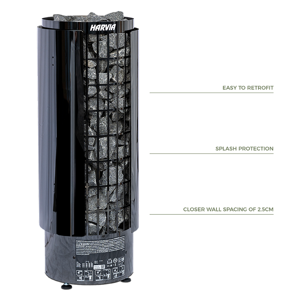 The Harvia Cilindro Protective Shield allows you to install your heater as close as 2.5cm to nearby walls or benches—compared to the standard 10cm requirement. This means more flexibility in your sauna layout, especially in tighter spaces or corner installations. It’s a simple yet highly effective way to maximise room without sacrificing safety.