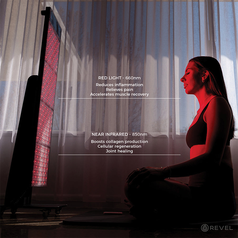 The Helio delivers powerful red light therapy using both 660 nanometre red light and 850 nanometre near infrared light. The 660nm wavelength targets the surface layers of skin to reduce inflammation, relieve pain, and accelerate muscle recovery. The 850nm light penetrates deeper tissue, boosting collagen production, cellular regeneration, and joint healing. Together, they create a transformative experience for your body and recovery routine.